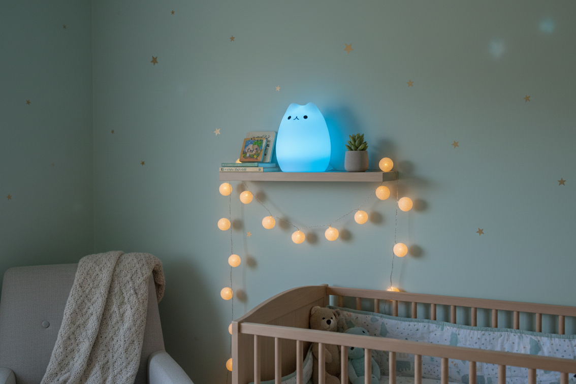 La lumière tamisée crée un environnement rassurant, parfait pour l’endormissement.